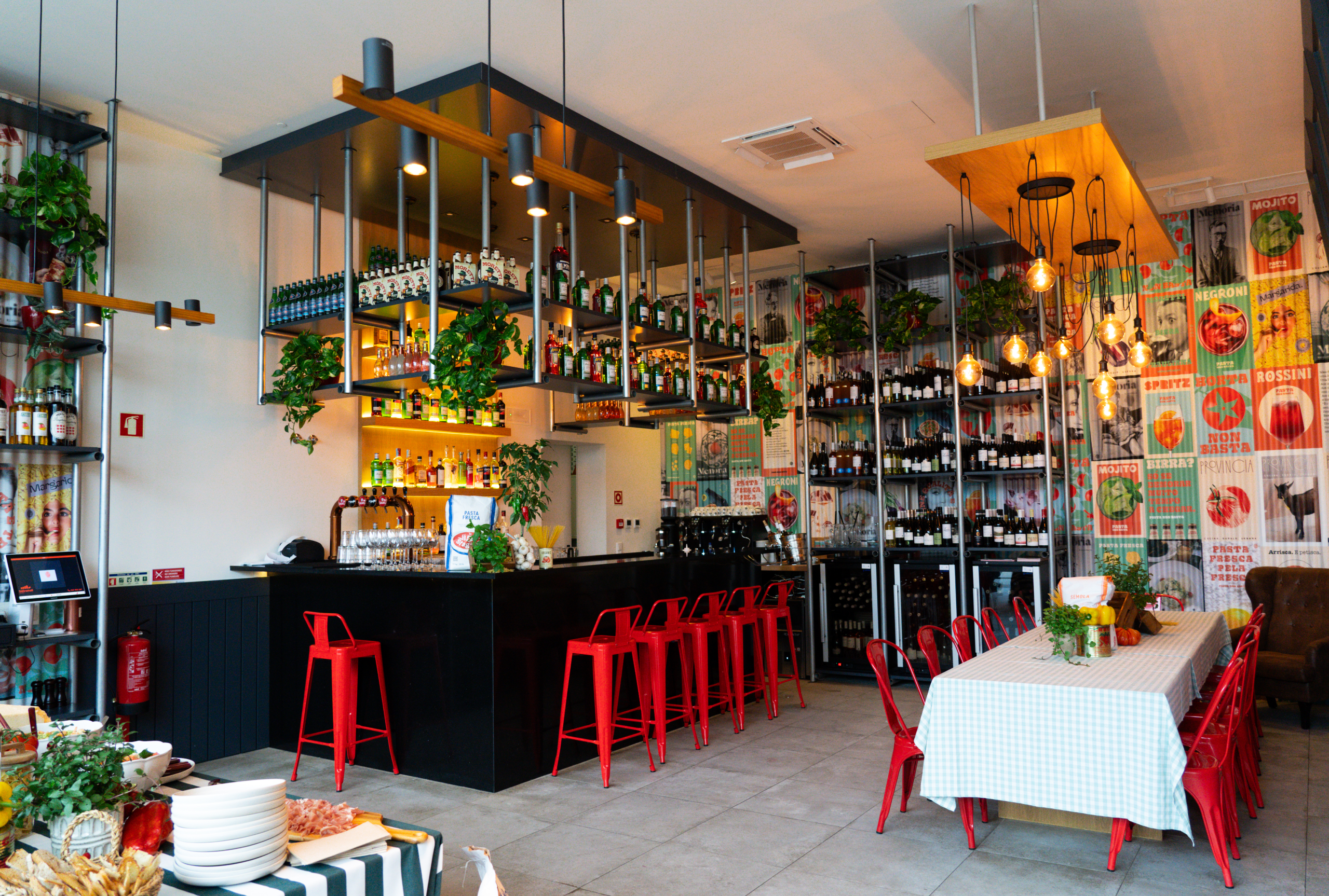 About the Project / For Pasta Non Basta, we designed a restaurant concept that blends the authentic spirit of Italian trattorias with a contemporary, urban edge. Industrial finishes, warm wooden details, vintage posters, and filament lighting create a space that is both cosmopolitan and welcoming. The result is a modern dining experience where tradition meets innovation in a vibrant atmosphere.